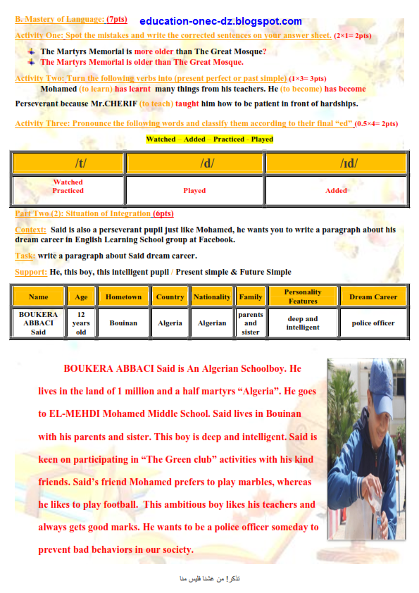 يسعدنا في مدونة التعليم و التربية في الجزائر ان نضع بين ايديكم و تحت تصرفكم فرض الثلاثي الثاني في مادة اللغة الانجليزية مع الاجابة سنة رابعة متوسط الجيل الثاني نموذج 4 للموسم الدراسي 2020 - 2021. جعلها الله في ميزان حسنات صاحبها.